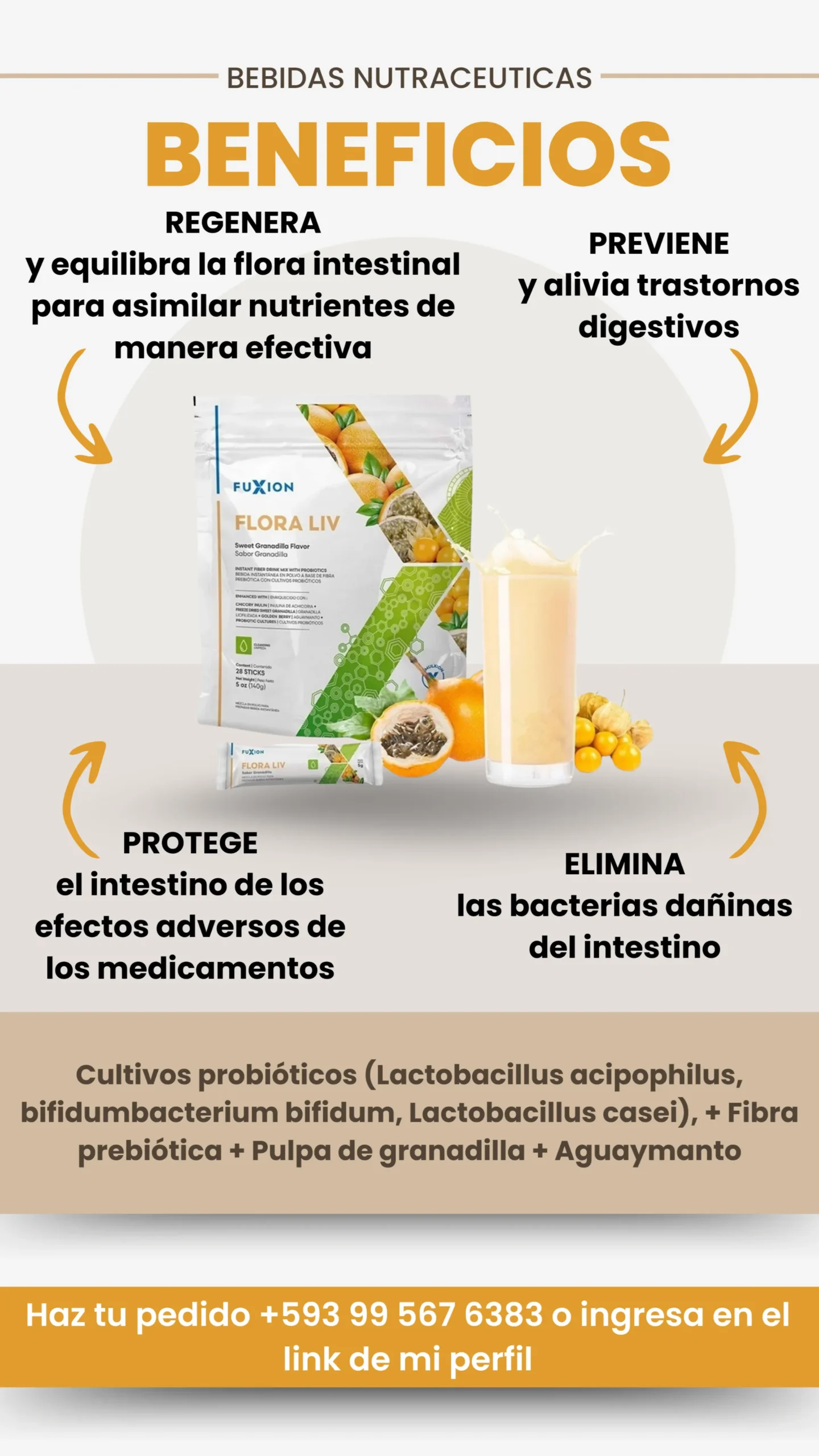 Una de las características clave de Flora Liv es su formulación que incluye cultivos probióticos seleccionados, que son microorganismos no patógenos que, al ser administrados en cantidades adecuadas, ofrecen múltiples beneficios para la salud. Estos probióticos ayudan a restablecer el equilibrio de la flora intestinal, especialmente después de alteraciones que pueden provocarse por una dieta inadecuada o el uso de antibióticos. Flora Liv no solo se enfoca en la restauración de esta flora, sino que también potencia la presencia de hasta 10 mil millones de bacterias beneficiosas por porción, lo que lo convierte en una opción eficaz para quienes buscan un apoyo intestinal significativo.